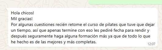 Estoy super contenta con el instructorado. Es muy completo y pedagógicamente, impecable.