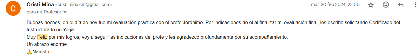 OJALÁ PUEDA TRANSMITIR TODO LO APRENDIDO, CON LA MISMA PASIÓN CON LA QUE LO HICISTE, MAESTRO JERÓNIMO, EN EL PRIMER CURSO DE HATHA YOGA Y EN ESTA ESPECIALIZACIÓN.